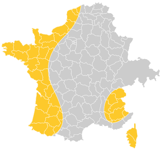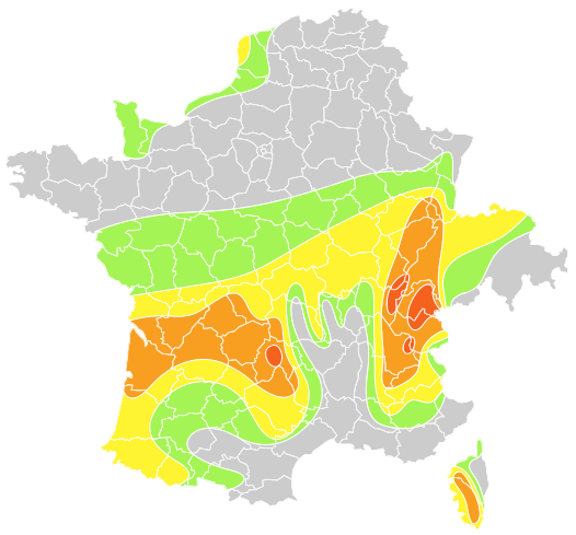 Une perturbation ondulante se met en place dimanche en cours de journée et va perdurer une grande partie de la nuit suivante puis journée de dimanche de l'océan aux frontières de l'est. Les précipitations seront copieuses avec des cumuls atteignant fréquemment 30 à 50 mm de l'Aquitaine vers l'est de la France, souvent 50 à 80 mm de la Gironde au sud-ouest du Massif Central et du sud des Vosges à l'Isère ainsi que sur les versants ouest du relief corse. Des pointes à plus de 100 mm sont prévues sur les sommets du Cantal, du sud du Jura et des Savoies.