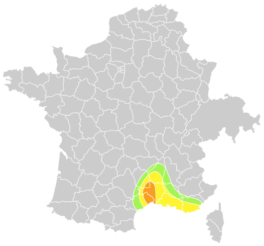 Dans la nuit de dimanche à lundi, de fortes pluies à caractère orageux concernent le Languedoc. Elles perdurent en journée de lundi tout en se décalant lentement vers la Provence et la côte d'Azur. Bien qu'assez hétérogènes, les cumuls atteindront fréquemment 30 à 50 mm du sud du Var au sud de l'Ardèche et fréquemment 50 à 80 mm dans l'est de l'Hérault et l'ouest du Gard. Ces valeurs peuvent être localement dépassées là où circuleront les orages les moins mobiles.