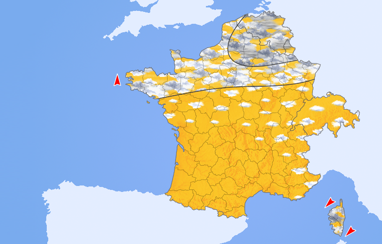 Le ciel est étoilé dans toutes les régions du sud et de l'est tandis qu'il est couvert sur les régions du nord-ouest où un vent soutenu souffle. Il atteint 70 à 80 km/h en rafales en Manche et Mer du Nord. Notons la possibilité d'une ondée résiduelle sur l'est de la Corse.
