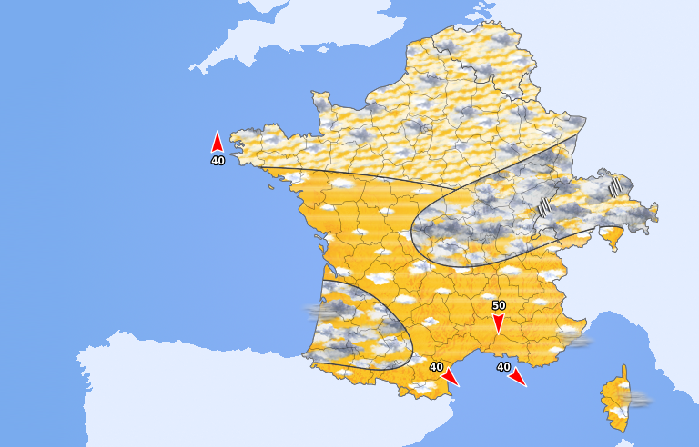 Le ciel s'annonce plus ou moins nuageux avec quelques averses, surtout des frontières de l'est à la Corse et sur les Pyrénées. Les températures devraient se stabiliser. Tendance à confirmer.
